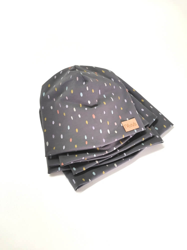 Prehodna kapa je narejena iz bombažnega jersey-a. Je dvoslojna, raztegljiva, zračna. Lepo se prilega glavi in ne leze z ušes.